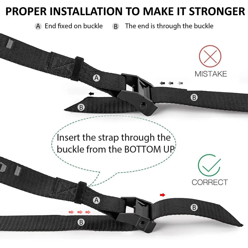 Adjustable nylon straps with solid cam lock buckles for easy setup